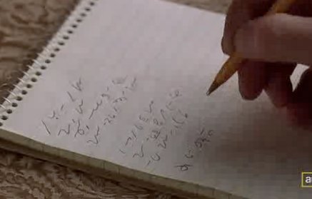 My friend posted this on my facebook asking if I could read it. It’s a screen cap of Mad Men (TV show) and the guy is supposedly taking notes in shorthand. It looks like gibberish to me but I came up with (mind you I had been drinking a little):