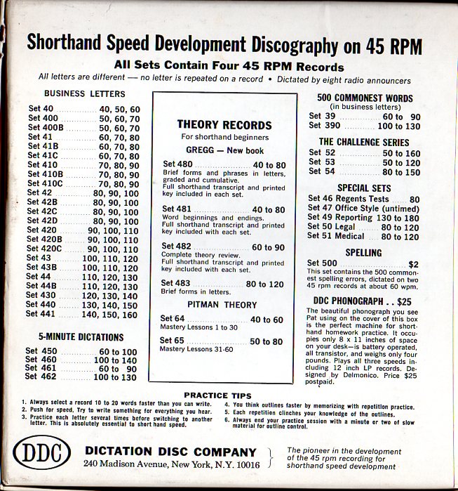 I’ve digitized another Dictation Disc Company record set (482). This one includes 24 dictations that range from 60 to 90 WPM. Most of them are less than 2 minutes long.